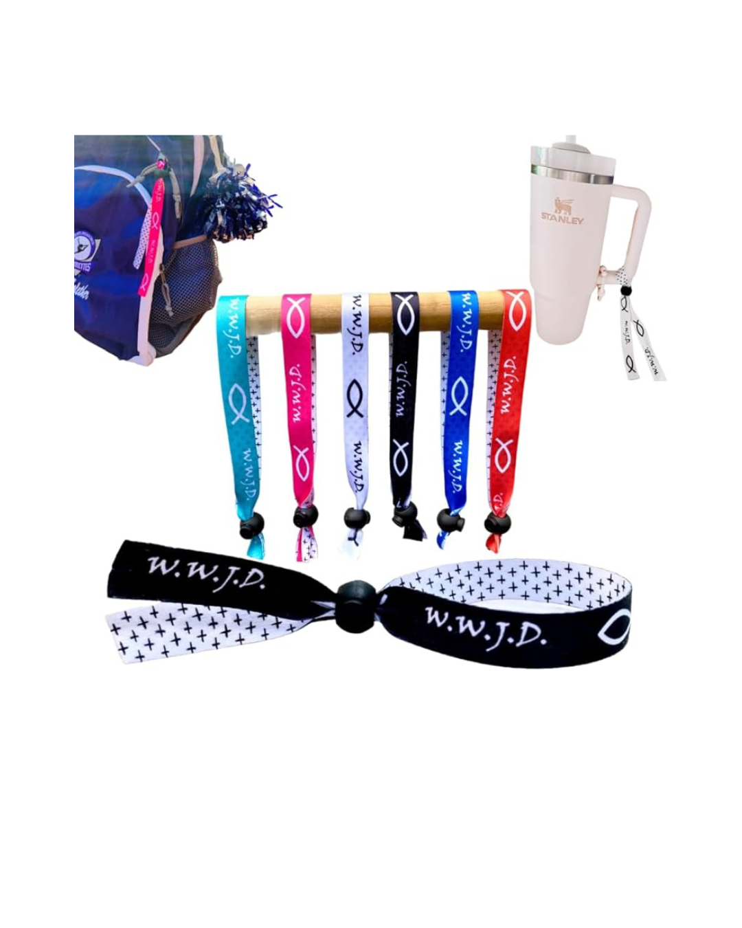 These Ribbon Bracelets are great to share with everyone. We offer 2 different styles; WWJD (What Would Jesus Do) and HWLF (He Would Love First). They come in a 24 pack and can be put on tumblers, backpacks, ankles, and wrists. See all the ways to use them